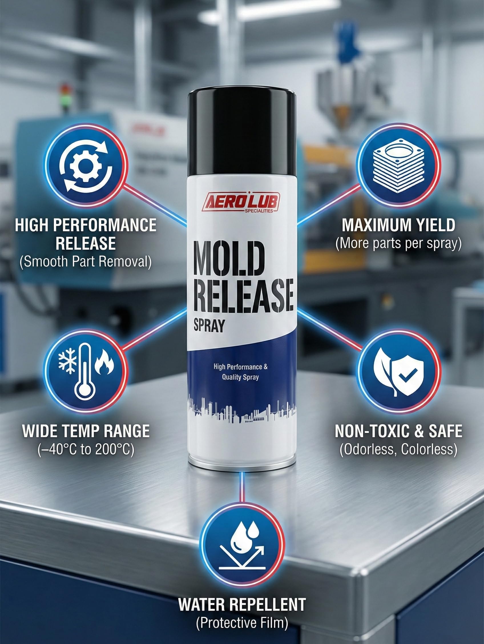 Ideal for injection moulding, blow moulding, and thermoforming processes. Prevents plastic components from sticking to moulds and ensures consistent release cycle after cycle.